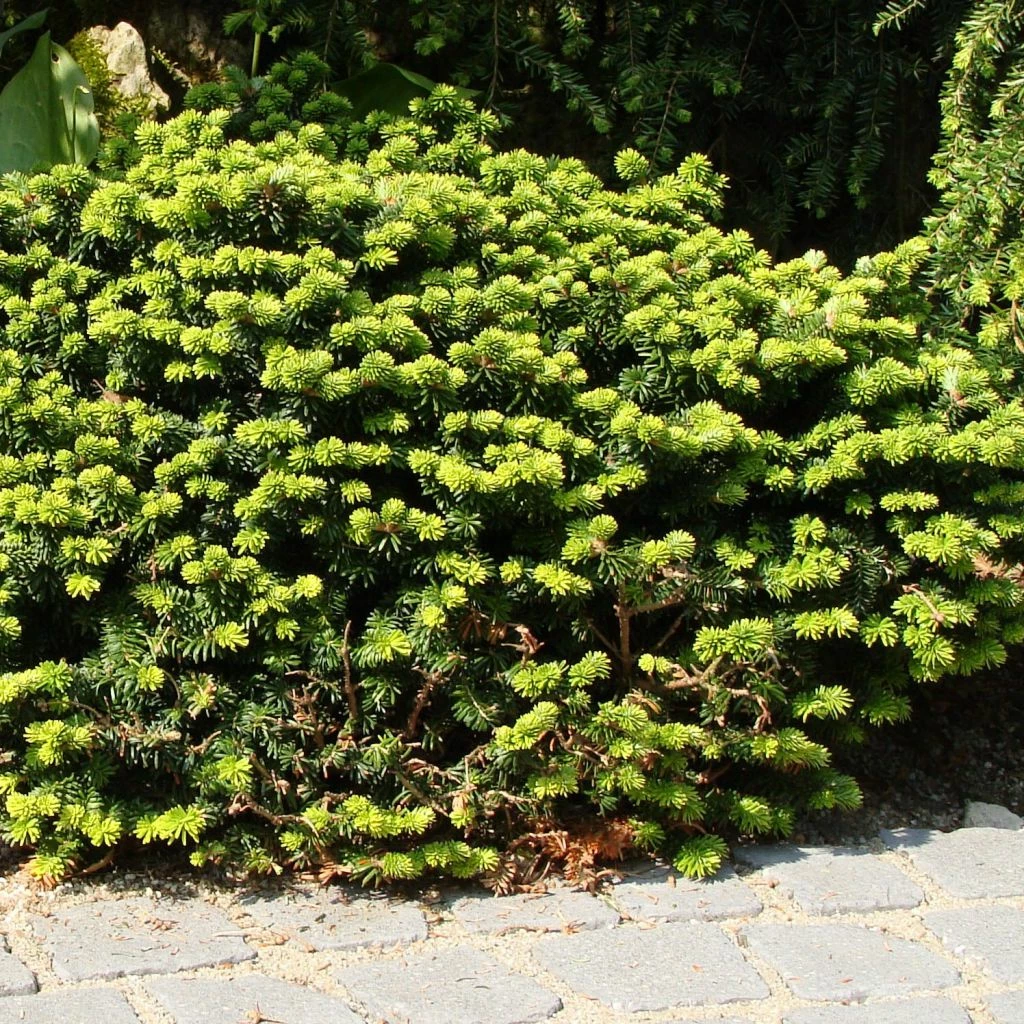 L’Abies balsamea Nana est une forme naine de sapin baumier, au port trapu et très compact, couvert d’un feuillage fin et doux, vert franc. Au printemps, ses bourgeons clairs et proéminents portés à l’extrémité de branches presque verticales apportent de la lumière à l’ensemble. Avec sa croissance lente et sa petite taille, il est parfait pour les petits jardins, les rocailles ou en bac.