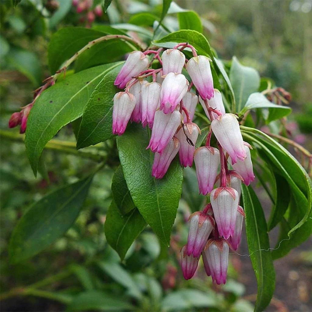 Le Pieris japonica Christmas Cheer est une excellente variété d’andromède du Japon, à la fois bien rustique, florifère dès son jeune âge, et dotée d’une floraison très agréablement bicolore, en rose foncé carminé et blanc-crème. Il est décoratif toute l’année, par ses boutons floraux rose soutenu qui se forment dès le mois de décembre, sa merveilleuse floraison en début de printemps, son feuillage qui persiste en hiver, et enfin pour son port souple et naturel. Le pieris est un arbuste de mi-ombre et de terre de bruyère restant fraîche, qui se cultive sans difficulté au jardin ou en bac si ces conditions sont réunies.