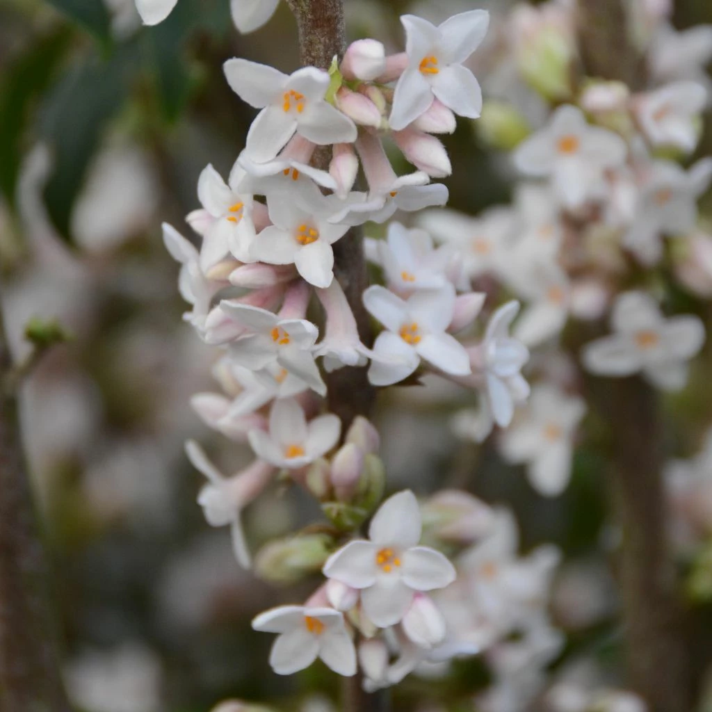 Encore trop peu connus, les Daphnés font pourtant partie, avec le Sarcococca et l’Hamamélis, des rares arbustes parfumés en hiver. Et si le Daphné mezereum fleurit précocement dès le mois de février, d’autres comme le Daphne, (x) transatlantica attendent le mois de juin.